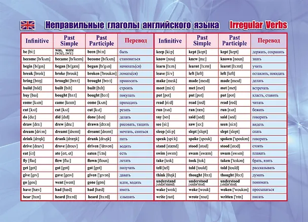 Учебный плакат "Неправильные глаголы английского языка", А5