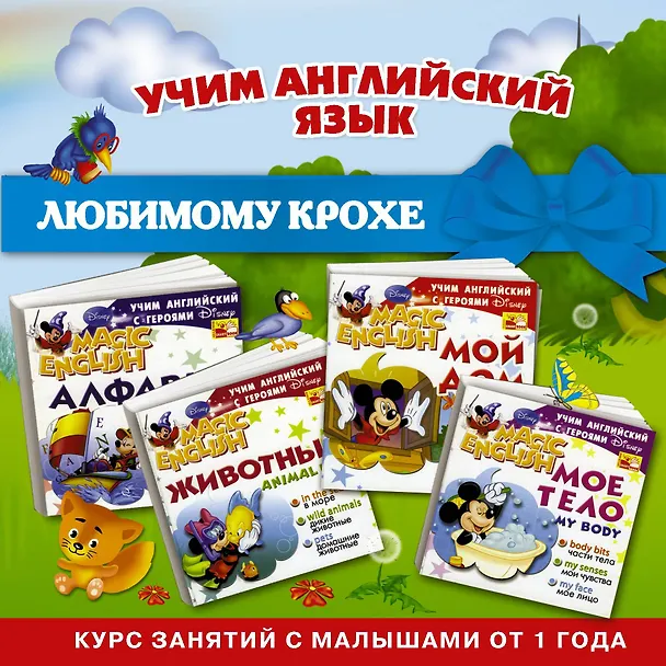 Учим английский язык с героями Disney : Комплект из 4-х книг: Мое тело. Мой дом. Алфавит. Животные : Курс занятий с малышами от 1 года