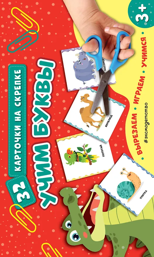 Необычное пособие для дошкольников поможет ребёнку от 3 лет выучить буквы русского алфавита. При помощи ножниц книга превращается в комплект из 32 двусторонних обучающих карточек. Перемешайте карточки и предложите дошкольнику самостоятельно выбрать одну из них. Задача взрослого — показать ребёнку букву, назвать звук, который она обозначает, и показать её место в слове на обратной стороне карточки. Яркие привлекательные иллюстрации заинтересуют ребёнка и пробудят в нём желание научиться читать. Пособие можно использовать как для домашнего обучения, так и в детском саду. Книга для детей поможет дошкольнику в игровой форме выучить буквы, развить фонематическое восприятие, внимание, память, логи