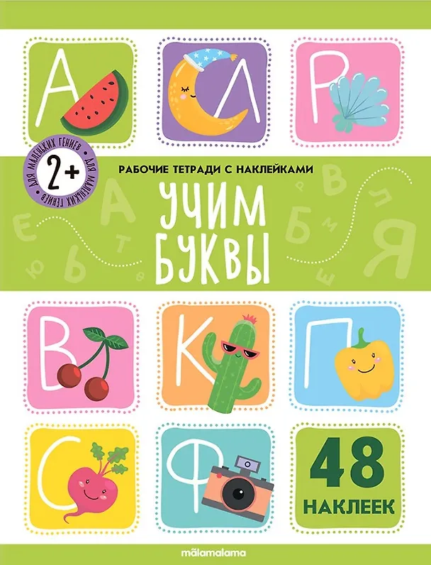 Учим буквы. Рабочая тетрадь с наклейками. 48 наклеек