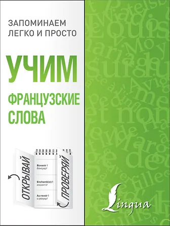 Как легко и быстро запомнить французские слова, не тратя на это слишком много времени? Это компактное пособие размером с блокнот - отличное решение. В небольшой книжке - самые нужные слова по основным темам. Пособие устроено таким образом, что открывая поочередно "створки обложки", можно запоминать слова и тут же проверять свою память.