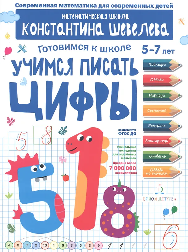 Учимся писать цифры. Для детей 5-7 лет. Математическая школа Константина Шевелева.