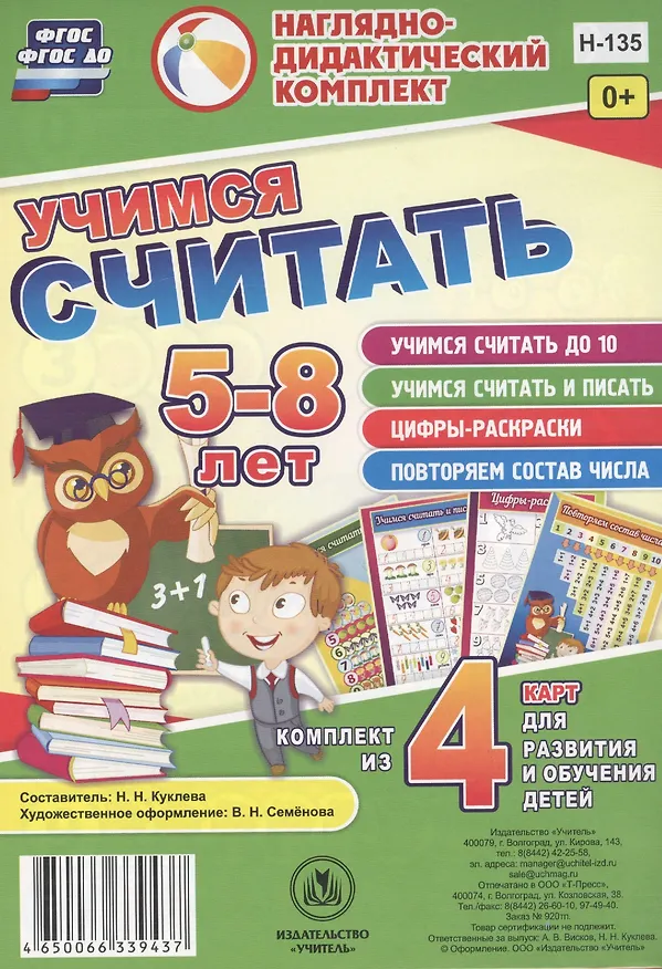 Учимся считать 5-8 л.. Комплект из 4 карт для развития и обучения детей (НДК) (листы) (упаковка) Куклева (ФГОС ДО)