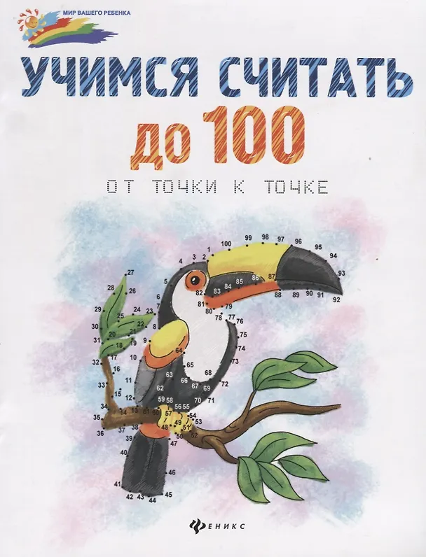 Эта книжка поможет вашему ребёнку легко выучить и запомнить цифры от 1 до 100, соединяя точки и рисуя забавных животных. А ещё их можно раскрасить!