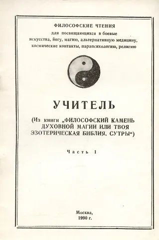 Учитель (Из книги "Философский камень духовной магии или твоя эзотерическая библия. Сутры"). Часть 1