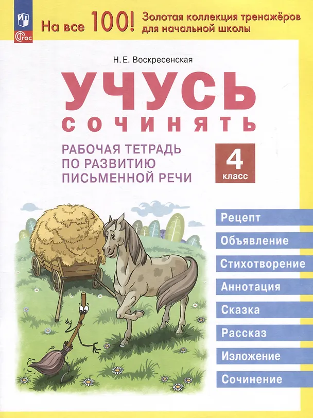 Рабочая тетрадь содержит задания для системного и последовательного развития письменной речи младшего школьника. Материал пособия способствует развитию связной речи через формирование и поддержание мотивации к созданию своего текста и совершенствование творческих способностей. Тетрадь отличает коммуникативный подход, при котором программный материал осваивается опосредованно, в процессе решения коммуникативной или творческой задачи. В основу структуры положен тематический (например, праздник, друзья, семья), а не жанровый принцип. В конце темы за счёт методических и оформительских решений обучающийся может создать конкретный речевой продукт (сочинение, изложение, рассказ, поздравительную отк