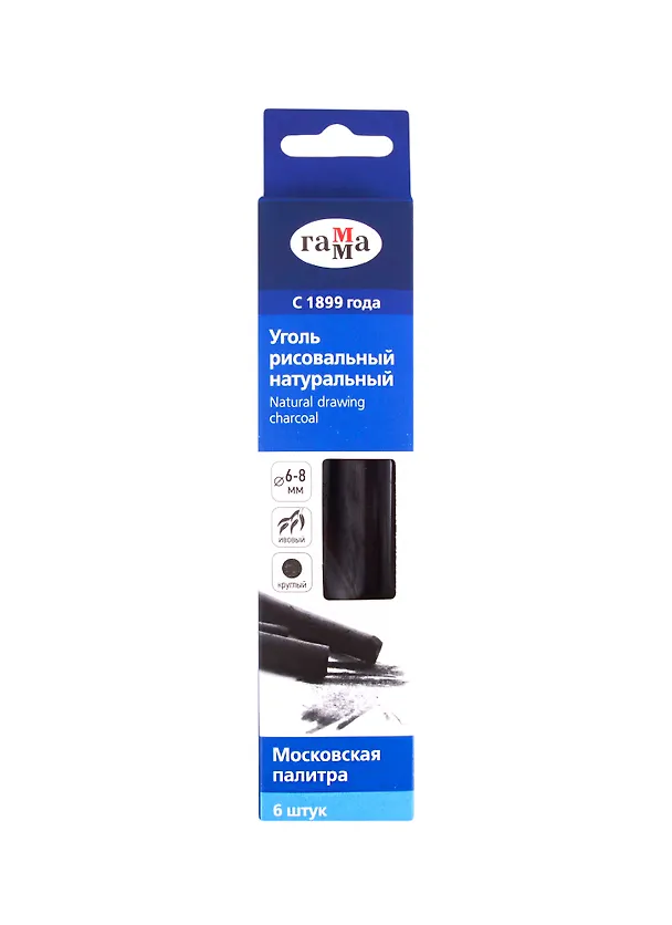 Натуральный уголь для графики, набросков и зарисовок. Не царапает бумагу, мягко растушевывается. Легко ложится на различные текстуры бумаги и холста, оставляет на поверхности бархатистое покрытие глубокого черного цвета. Произведен в Европе по традиционным технологиям из ивовых прутьев путем карбонизации.