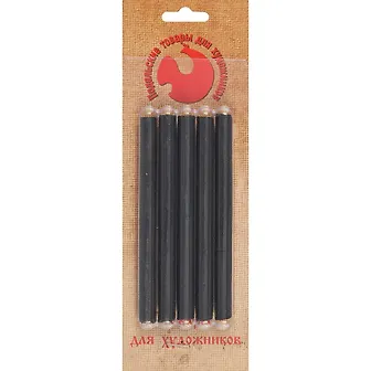 Хороший уголь, довольно мягкий, но хрупкий и сильно осыпается. Легче стирается, чем прессованный уголь других производителей, которым я пользовался. Для зарисовок и графических работ в смешанной технике материал вполне подходит. Можно получить интересные фактуры, рисуя боковой стороной мелка. Несмотря на хорошую упаковку, один стержень пришел поломанным.