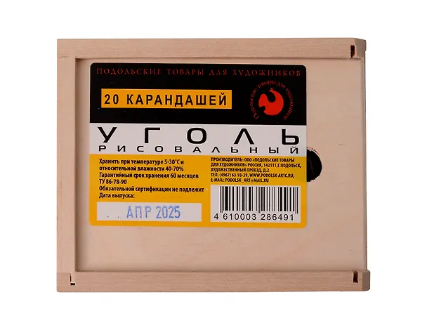 Уголь рисовальный 20цв ассорти, дерев.пенал