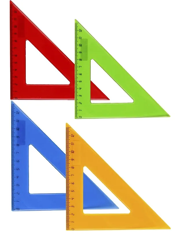 Угольник 12см 45*90*45 цв. прозр., ассорти