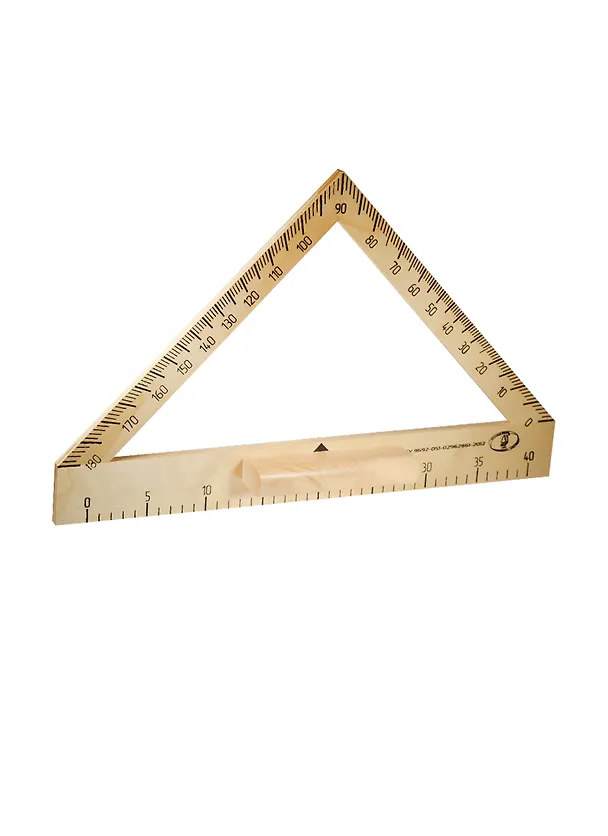 Транспортир КЛАССНЫЙ . Изготовлен из твердолиственных пород древесины. Незаменимый помощник учителя геометрии, алгебры, физики, имеет ручку для удобства черчения на вертикальной или наклонной школьной доске. На шкале нанесена разметка углов, в вершине угольника прямой угол.