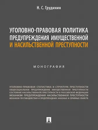 В монографии рассматриваются понятие, содержание и основные направления уголовно-правовой политики в сфере предупреждения имущественной и насильственной преступности в Российской Федерации в условиях построения правовой государственности и современной рыночной экономики. Особое внимание уделяется предупредительным и профилактическим мерам, призванным снизить уровень преступности в указанной сфере. Подчеркивается, что повышение эффективности функционирования базовых уголовно-правовых институтов, укрепление их превентивной функции невозможны без четко выстроенной уголовно-правовой политики государства и системы предупреждения имущественной и насильственной преступности.