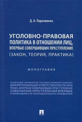 Уголовно-правовая политика в отношении лиц, впервые совершивших преступление (закон, теория, практика). Монография