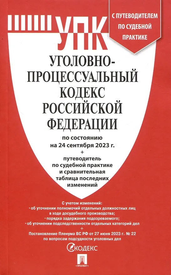 Уголовно-процессуальный кодекс РФ по состоянию на 24.09.23 с таблицей изменений и с путеводителем по судебной практике