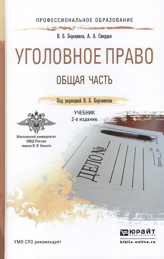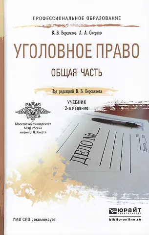 Валерий Боровиков «Уголовное право. Общая часть 2-е изд., пер. и доп. учебник для СПО» и выбрать удобный способ его получения: самовывоз, доставка курьером