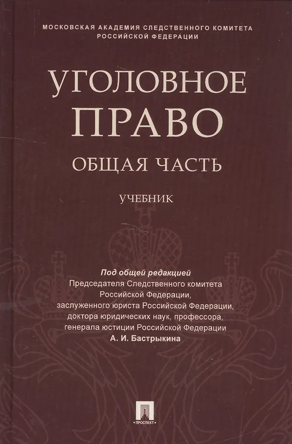 Очень хороший учебник. Раскрыты все темы общей части уголовного права. Понятное, без лишней информации изложение материала. Хотелось бы, чтобы под редакцией А.И. Бастрыкина был также учебник по Особенной части уголовного права.