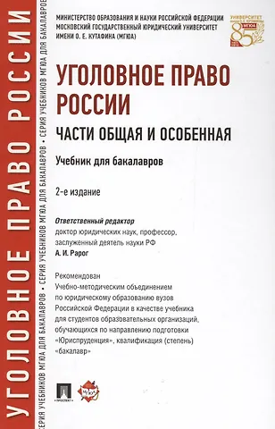 В предлагаемом учебнике излагается материал учебного курса Общей и Особенной частей уголовного права России. Нормативные материалы и судебная практика используются по состоянию на 17 декабря 2015 г. Учебник полностью соответствует новым стандартам высшего образования по направлению "Юриспруденция" (квалификация (степень) - "бакалавр"), и подготовлен профессорско-преподавательским коллективом МГЮА имени О. Е. Кутафина, который разрабатывал программы учебных дисциплин базовой части нового стандарта. Учебник предназначен для студентов юридических факультетов и вузов, обучающихся по программам бакалавриата, а также преподавателям, практикующим юристам и всем интересующимся правом.
