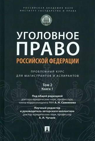 Уголовное право Российской Федерации: проблемный курс для магистрантов и аспирантов: в 3-х т. Том 2. Книга 1. Уголовный закон. Законодательная техника. Ответственность в уголовном праве. Состав преступления. Стадии совершения преступления