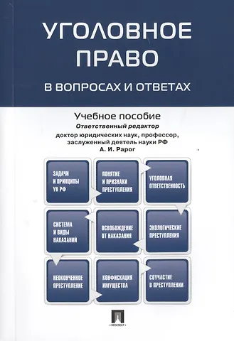 В предлагаемом учебном пособии в форме ответов на вопросы представлен материал учебного курса «Уголовное право». Пособие подготовлено в соответствии с программой курса по специальности «Юриспруденция» на основе современных научных концепций и правоприменительной практики.