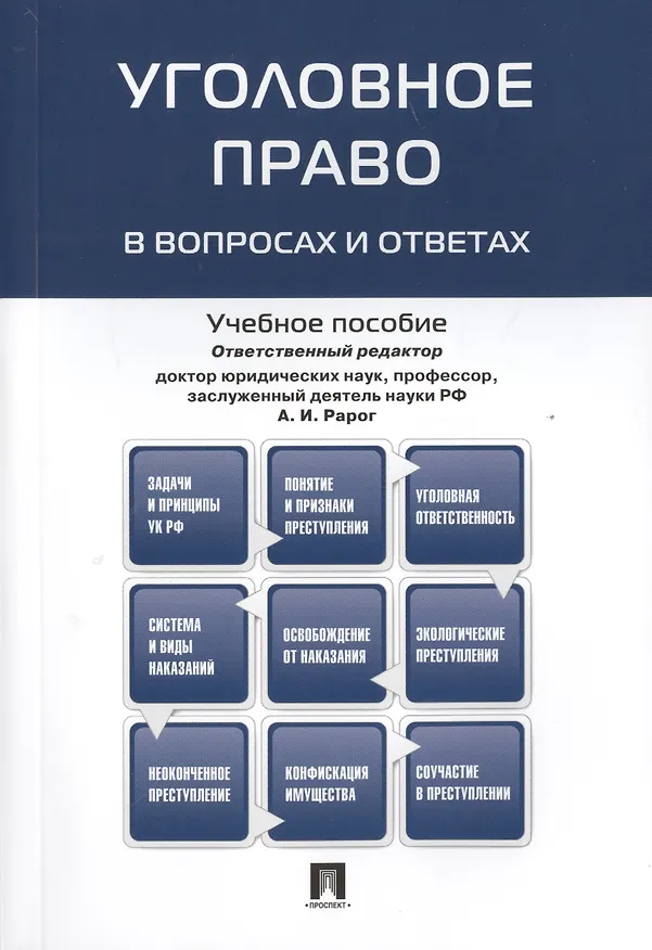Учебное пособие содержит в себе структурированный материал по всему курсу уголовного права. Оно подготовлено хорошим коллективом авторов. Данное пособие подойдёт студентом бакалавриата, как при подготовке к сдаче общей части УК, так и особенной. Однако при изучении стоит учитывать, что в пособии представлено законодательство по состоятельны на 2015 год.