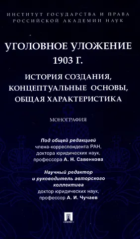 Уголовное уложение 1903 г.: история создания, концептуальные основы, общая характеристика. Монография.-М.:ИГП РАН,2024.