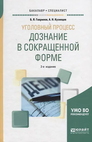 Уголовный процесс: дознание в сокращенной форме. Учебное пособие для бакалавриата и специалитета