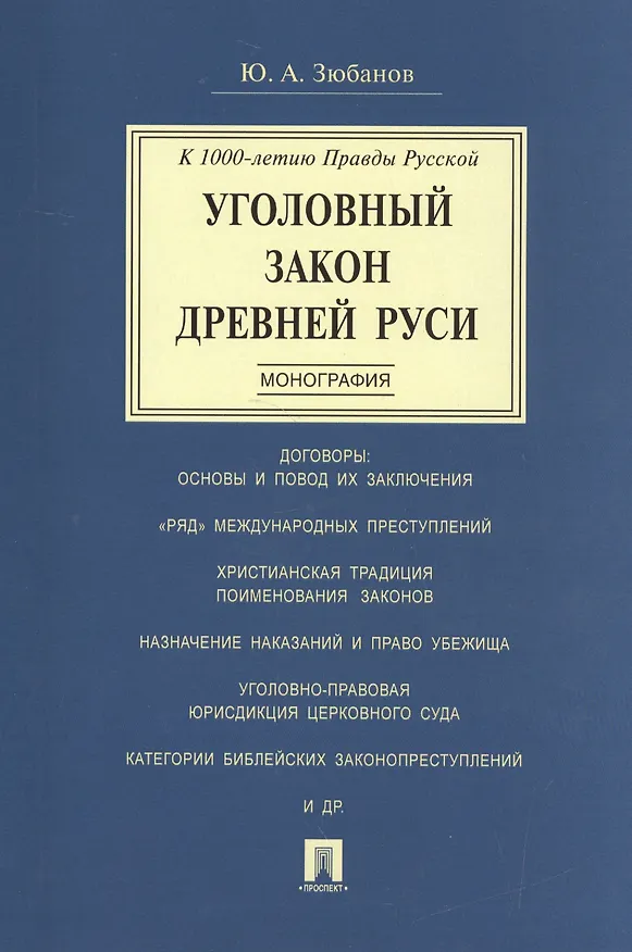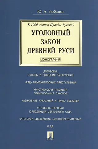 В монографии исследуется влияние вероучений на зарождение и развитие древнерусского уголовного икона. Религиозные положения рассматриваются как основа памятников, в частности договоров Руси с Византией, Правды Русской, церковных Уставов и других нормативных актов этого периода. Раскрывается механизм воздействия религиозных канонов на содержание норм, принципов и институтов отечественного уголовного права и процесса.