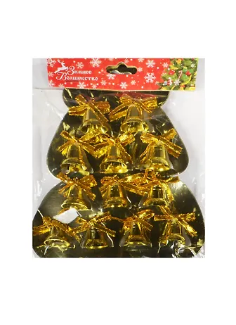 Украшение елочное Колокольчики 12шт 2см глянец золотые бантики (547046)
