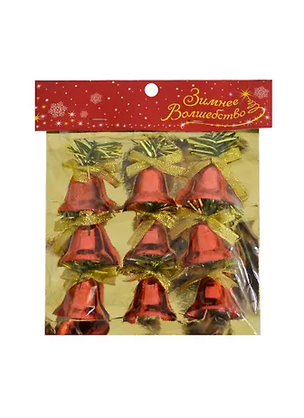 Украшение елочное колокольчики (9шт) (3,5см) красные (547031) (Сима-ленд)