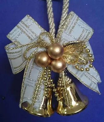 Украшение новогоднее подвесное, Золотые колокольчики с белым бантиком, металл/полиэстер