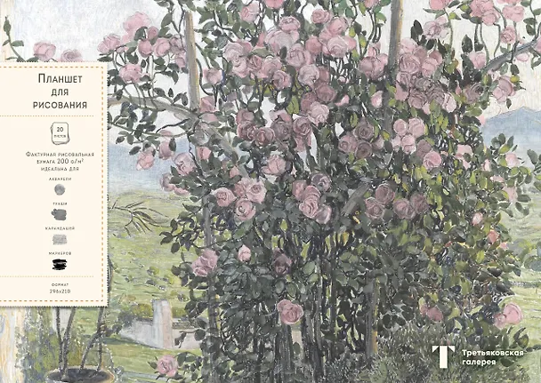 Третьяковская галерея - это крупнейшее собрание русского искусства в мире! Прикоснитесь к прекрасному и погрузитесь в волшебный мир русской живописи. Функциональный формат А4 и 20 листов плотной акварельной бумаги позволят рисовать всем, чем хотите: от карандаша и маркера до акварели. А благодаря удобному скреплению можно просто вырвать лист с готовой работой и поставить в рамку или подарить другу! Больше не нужно ждать вдохновения дома или делать эскизы на салфетках — ваш персональный мольберт всегда будет с вами! Выбирайте лучшее!
