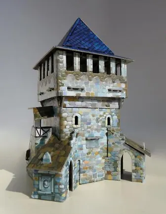 Серия конструкторов «Средневековый город». Каждый конструктор из этой серии является самодостаточным игровым объектом, но в тоже время их можно объединять в один большой город, так как они между собой совместимы. Четырехугольная башня, стены которой выложены из серого камня. Крыша башни для игры выполнена открывающейся. В набор входят: 4 фигурки, и повозка с упряжкой из двух волов. Этот конструктор развивает мелкую моторику и пространственное воображение, учит творчески подходить к решению любых задач. Все детали заранее вырублены.