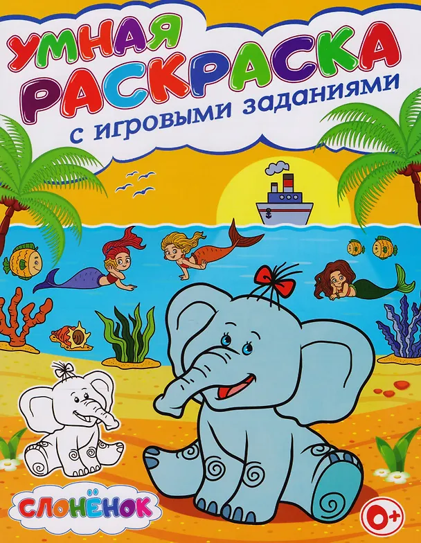 Умная раскраска с игровыми заданиями.Слоненок
