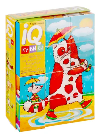 Необычные кубики. В наборе 10 кубиков, из которых можно собрать шесть вариантов картинок. Картинки нестандартные (не такие, как мы привыкли их видеть - квадратные либо прямоугольные, а различных форм). Очень понравились. Дочка любит котиков и всё, что сними связано, а тут целых шесть разных картинок. Ребенок может подолгу сидеть и перебирать кубики, пытаясь собрать картинку.