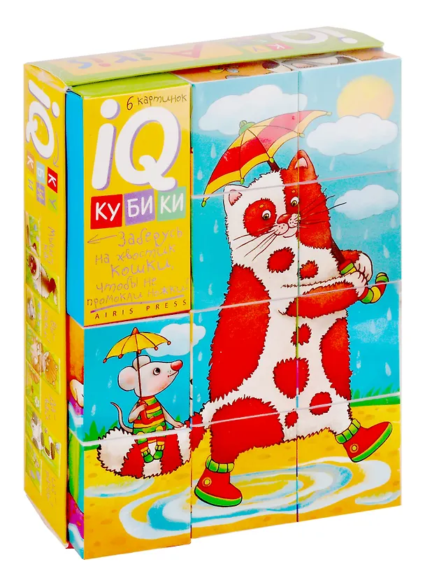 Эта игра поможет ребёнку творчески взглянуть на мир. Набор состоит из 10 кубиков размером 4х4 см. Ребёнку нужно сложить картинку из 10 фрагментов. Но особенность данных кубиков в том, что они складываются не в форме привычного прямоугольника, а в виде различных фигур. В качестве подсказки даны 6 картинок с изображением весёлых котиков. Во время игры происходит знакомство с понятиями "часть" и "целое", развивается умение нестандартно мыслить и работать по образцу. Наклейки на кубики сделаны из качественной гладкой бумаги, которая не портится от игры.
