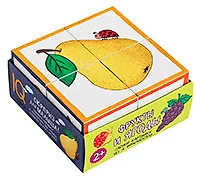 Набор состоит из 4 кубиков размером 4х4 см. Ребёнку нужно сложить картинку из 4 фрагментов. В качестве подсказки даны 6 картинок с изображением фруктов и ягод. Картинка кладётся на дно коробочки, и ребёнок ставит на неё нужные кубики. Во время игры происходит знакомство с понятиями "часть и целое", развивается умение работать по образцу. Наклейки на кубики сделаны из качественной гладкой бумаги, которая не портится от игры.