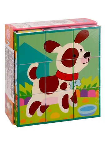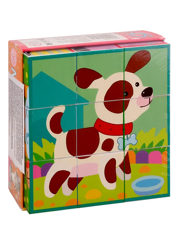 Комплект из 9 кубиков разработан специально для детей от 4 лет. Ребёнку нужно сложить картинку из 9 фрагментов. В качестве подсказки даны 6 картинок с изображением животных.