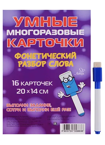 Умные многоразовые карточки. Фонетический разбор слова. 16 карточек