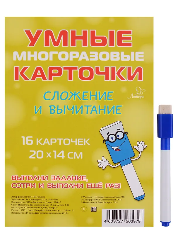 Умные многоразовые карточки. Сложение и вычитание. 16 карточек и маркер
