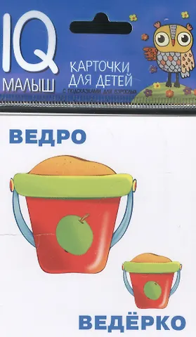 В набор входит десять красочных карточек (такие как: ведро - ведёрко, яблоко - яблочко, цветок - цветочек, чайник - чайничек и другие) и инструкция для родителей. Благодаря ему ребёнок научится различать предметы по величине. Я применяла карточки в различных словесных играх (в инструкции есть одна из них "Назови ласково"). Такие игры помогут деткам расширить словарный запас. Ребёнку очень понравились яркие карточки.