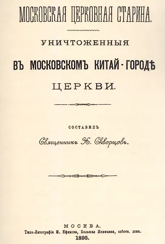 Репринт с издания. Москва, 1895. Московская церковная старина. Отдельный оттиск из "Московских церковных ведомостей".