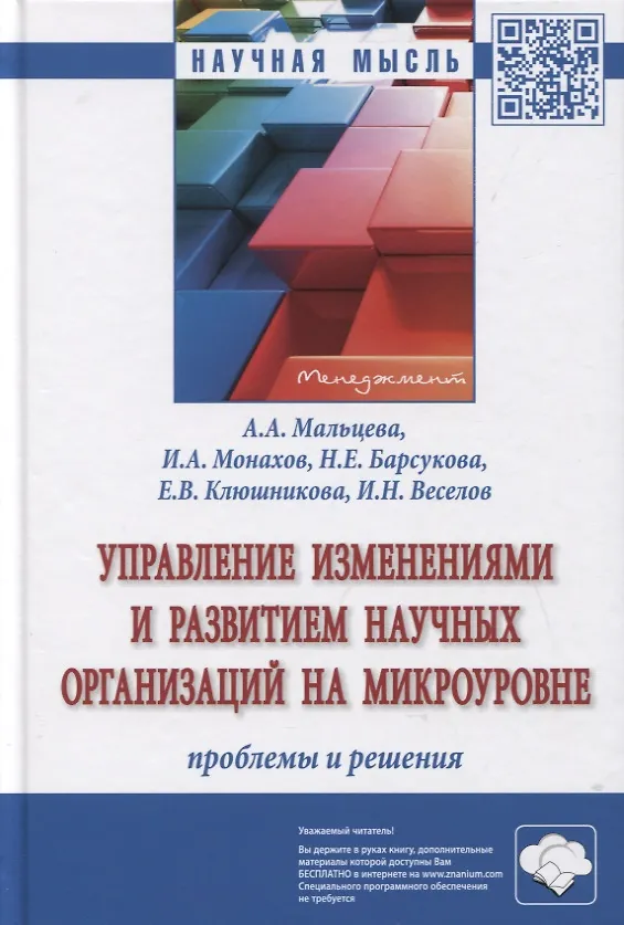 Управление изменениями и развитием научных организаций на микроуровне. Проблемы и решения. Монография