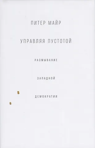 Во всех сложившихся демократиях Западной Европы происходит падение явки избирателей и сокращение числа членов ведущих партий. В книге ведущего ирландского политического ученого Питера Майра (1951-2011) оценивается влияние этих изменений, которые свидетельствуют о том, что избиратели покидают политическую арену. Одновременно с этим политические элиты Европы превращаются в однородный профессиональный класс, тесно связанный с государственными институтами, которые предлагают относительную стабильность в мире таких непостоянных избирателей. «Управляя пустотой» предлагает авторитетную и острую оценку перспектив политического представительства сегодня не только в европейских демократиях, но и во вс