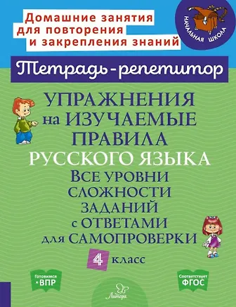Упражнения на изучаемые правила русского языка. Все уровни сложности заданий с ответами для самопроверки. 4 класс