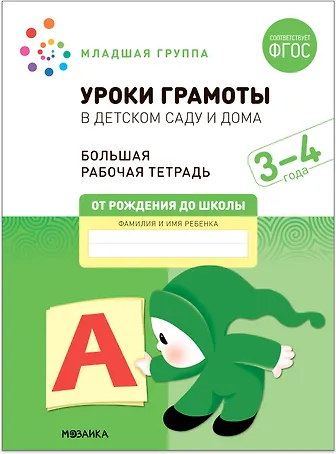 Уроки грамоты в детском саду и дома. Большая рабочая тетрадь. 3-4 года