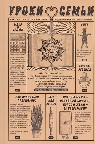 Мы рады представить читателю книгу «Уроки семьи», которая можетстать практическим руководством по построению осознанной и счастливой семейной жизни. В основе книги лежат аяты из Курьана и наставления Посланника Аллаха саллаллаху алейхи ва саллям, в которых ясно изложены права и обязанности как мужской, так и женской половины человечества. Каждый заслуживает счастья и имеет на это право. Так станьте счастливым!Просьба обращаться с изданием бережно, так как в нем упоминаются суры и аяты из Благородного Куръана.