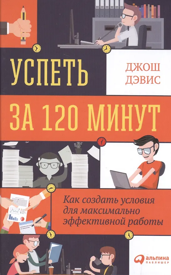 .Автор книги «Успеть за 120 минут» Джош Дэвис говорит, что единственный способ сдвинуться с мертвой точки — выделять по два самых эффективных часа в день, в течение которых надо выполнять самую сложную, важную и ответственную работу. Используя исследования в области нейробиологии, он объясняет, как орг