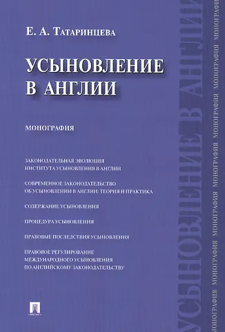 Монография представляет собой первое комплексное научное исследование института усыновления в Англии и Уэльсе как приоритетного направления государственной политики по защите прав детей, оставшихся без попечения родителей, где акцентируется внимание на тех категориях детей (подростки, дети из многодетных семей, дети, неполноценные в умственном или физическом отношении), передача которых на усыновление представляет собой значительные трудности.