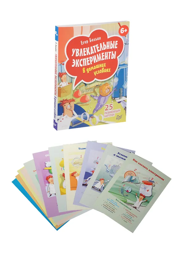 Хотите устроить дома настоящую научную лабораторию? Для этого совершенно не обязательно приобретать дорогостоящее оборудование и реактивы, достаточно будет подручного материала. В комплекте из 25 карточек представлены любопытные эксперименты по физике, химии, биологии, которые можно провести в домашних условиях. На каждой карточке вы найдете пошаговое описание опыта, научное объяснение и веселую иллюстрацию! Для детей дошкольного и младшего школьного возраста.