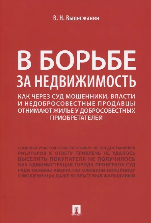 В данной книге рассказывается, по каким причинам возникают судебные тяжбы, как заканчиваются и почему очень часто купленная квартира от добросовестного приобретателя возвращается обратно к продавцу.